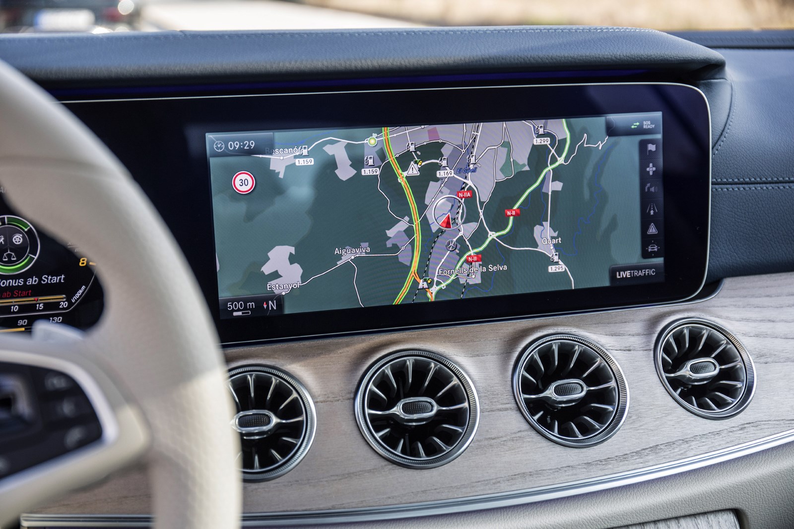 Inside, the coupe gains the E-Class sedan's dual infotainment screens running across the dash, plus touchpads on the steering wheel, which I used when I needed to move the head-up display further up the front windscreen.