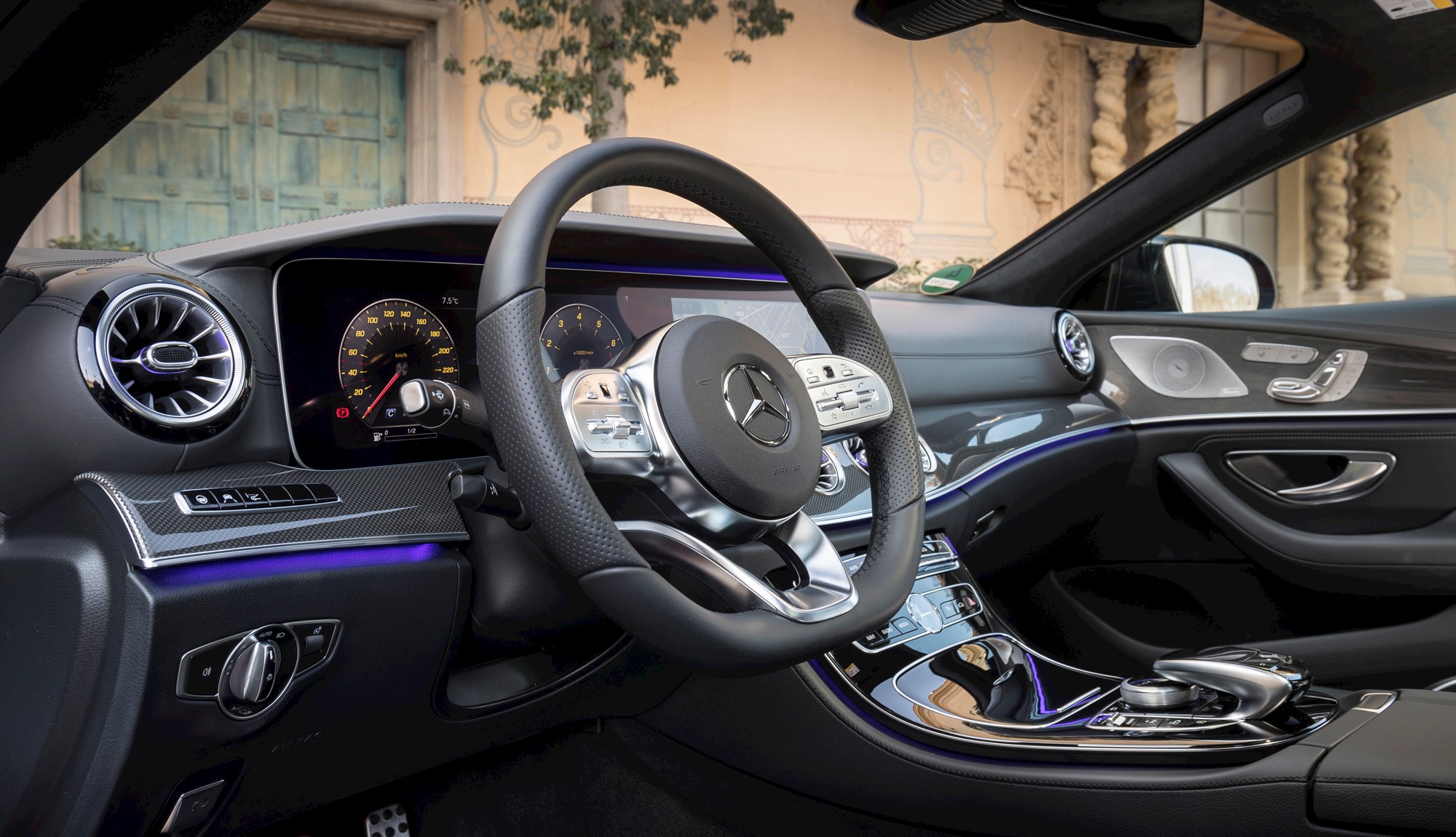 The 450 also benefits from Mercedes’ AWD system, 4Matic, which sends 60 per cent of torque to the rear. This kept the four-door coupe nicely on the road, with effortless cornering and even better response when, on the Sunday drive, we encountered at least 300 cyclists on our mountain route. With a tap on the accelerator, the 4Matic system helped us with a nifty overtaking manoeuvre on narrow winding roads.