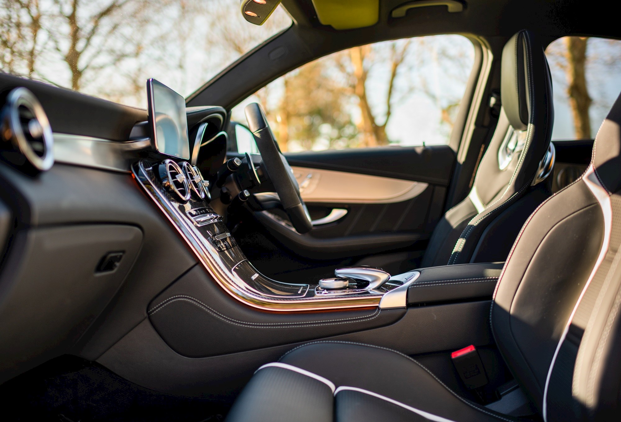The GLC 63S coupe is an acquired taste style-wise I reckon, but there was enough space for four adults for a long trip, though the rear view is limited due to the sloping roof.