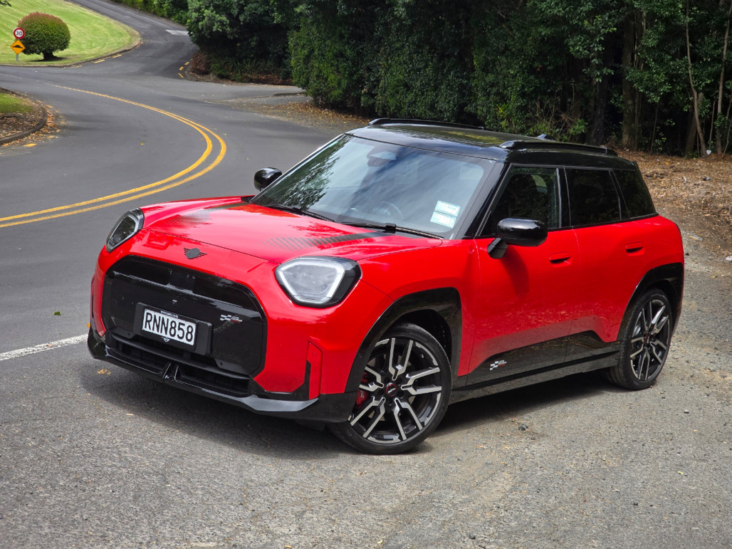 We've already reviewed the Aceman in its standard form, but this is the performance-oriented JCW version. You can probably tell by all the stickers and blacked-out trim. Actually, it's nicely executed; so no, that's not the contrived bit.