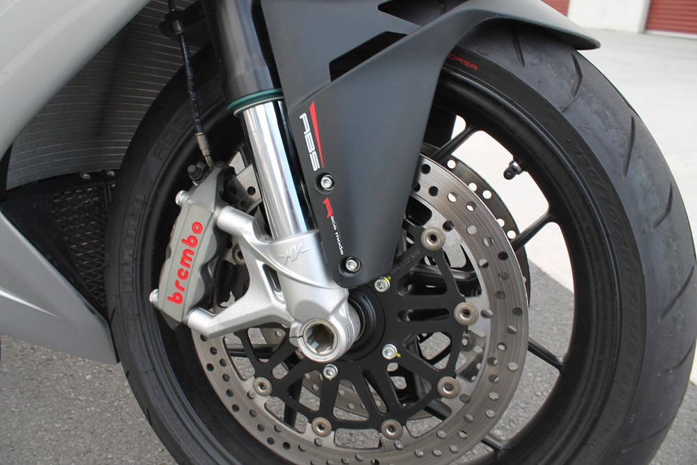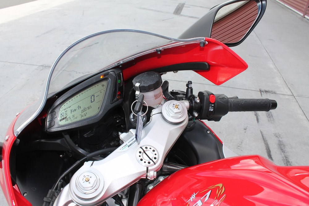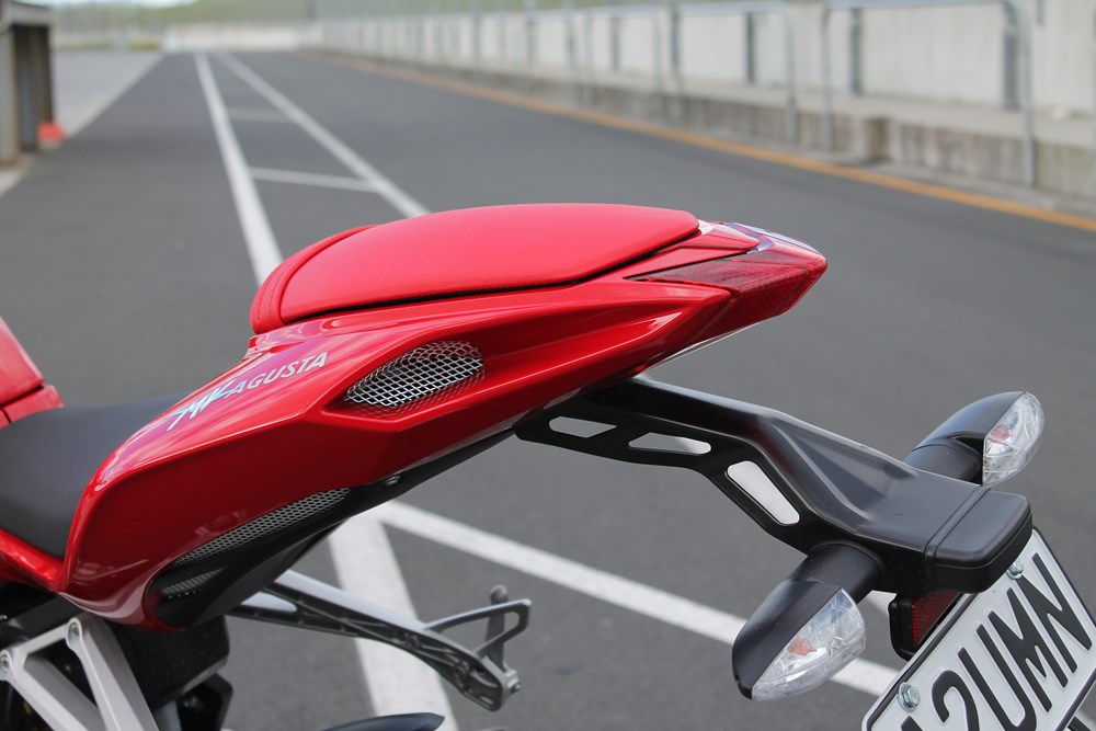 Where the stereotype of a supersport tends to be a bike with peaky power all in the top of the rev range, the F3's 798cc inline triple cylinder produces 88 Nm of torque helping to propel the bike forward rapidly, even at low RPMs. Match the torque output with a great whack of 110kW (148 hp) at a screaming 13,000 rpm, on paper the F3 sounds like a monster to control. But thanks to MV's electronics package, the F3 is a smooth purring kitten to ride on public roads. With most electronic aids, including ABS and Traction Control, accessible from the left hand you can alter just how much aggression you want.