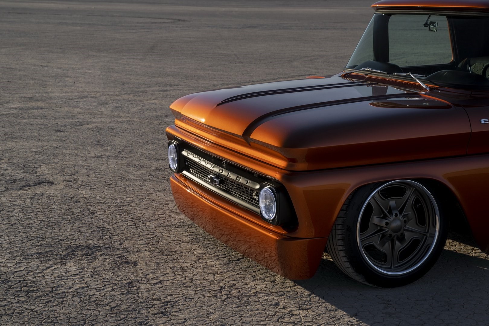 The Chevrolet E-10 Concept is based on a 1962 C-10 pick-up but ditches the original V8 engine and replaces it with two electric motors and a bank of batteries.