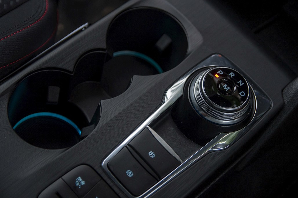 Ergonomically the biggest change inside is the adoption of a Jaguar-style rotary dial gear selector (e-shifter in Ford-speak). It's a touch of knurled metallic class relative to others in the segment, though perhaps more importantly it also reduces the level of clutter in the centre console. In the ST-Line, it's complimented with a wireless phone charging pad.