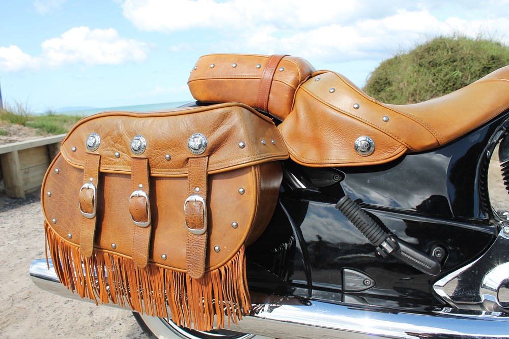 For the 2015 models, Indian has changed the tanning process for the leather to improve UV and weather resistance, but there is just something authentic about the slightly weathered look of the leather on the test bike.