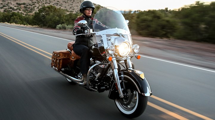 Differing from the Chieftain and Roadmaster models, the Chief Vintage and the Chief Classic have a front fork rake angle of 29 degrees, 4 degrees more rake than the heavier solid fairing bikes with their electronically adjustable screens.