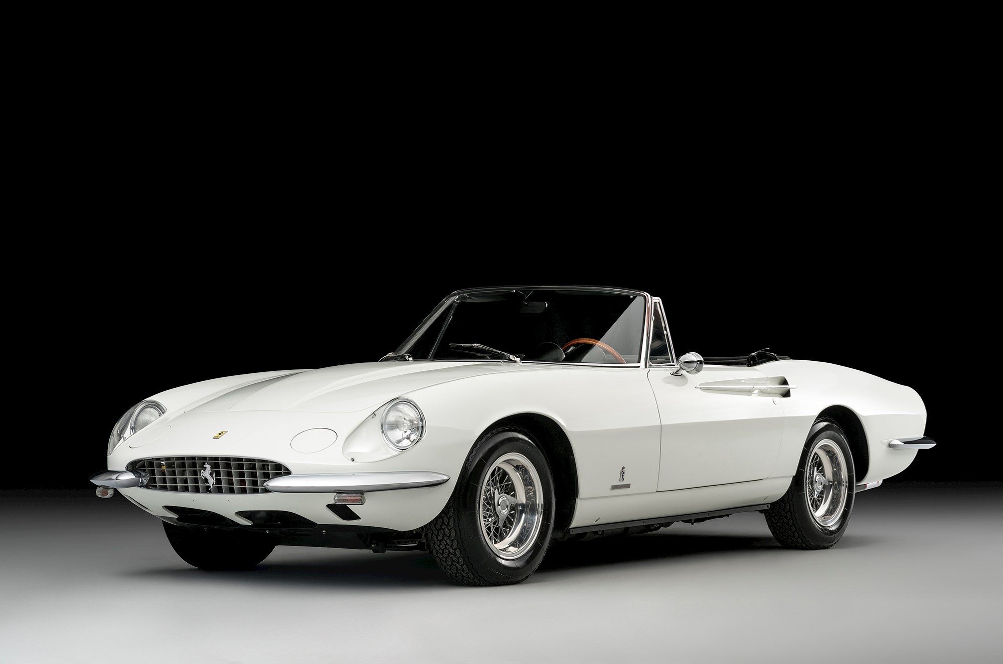 Then there’s an extremely rare 365 California Spyder. One of only fourteen ever made, this car was designed by Pininfarina as a direct successor to the 500 Superfast Coupe. Named “California” after its 250 predecessors, the 365 Spyder was fitted with a sophisticated 4.4-litre V12 engine, capable of producing up to 320hp.