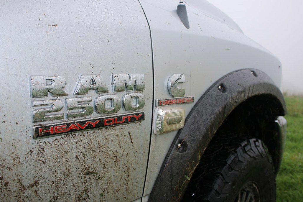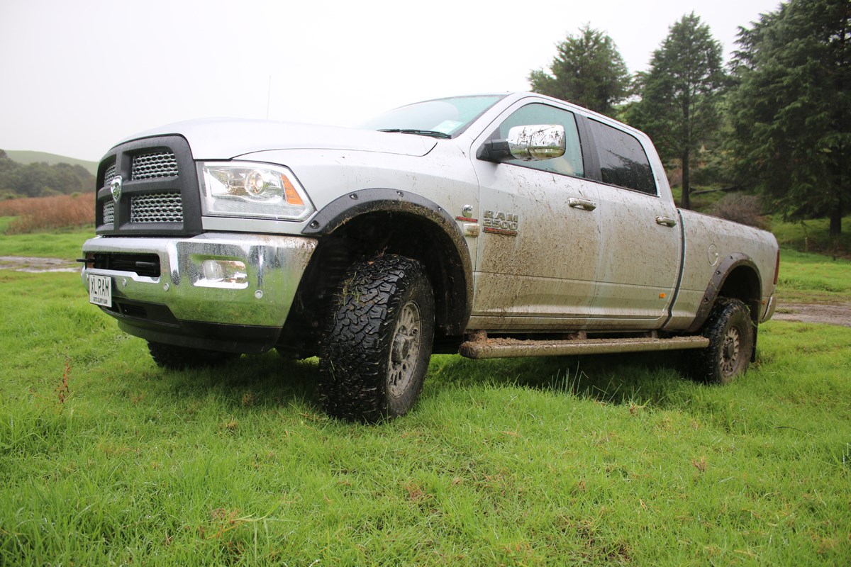 Off-road, the massive weight and width of the RAM 2500 creates a few vision issues. Fence posts are too low to see so be careful through the farm gates and make sure the park sensors are on.