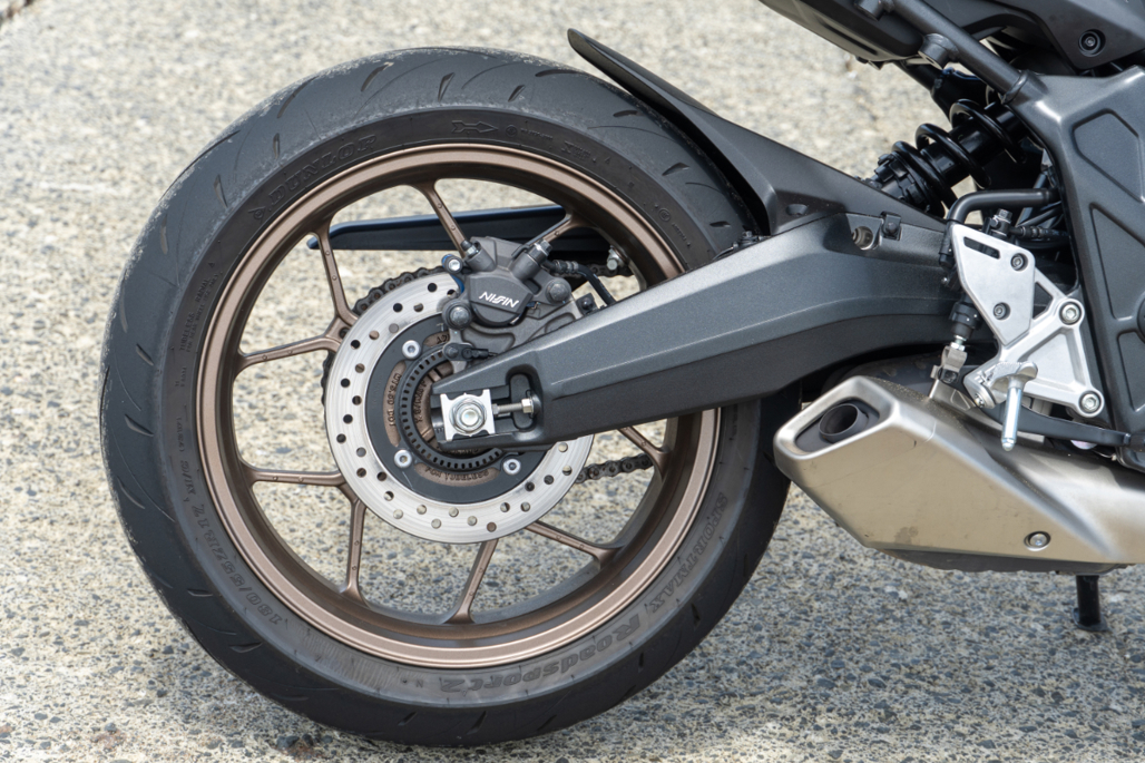 Despite this, the neutered CB650R is still satisfying to ride. The simple flex-free steel frame has inverted forks raked to a comparatively slack 25.5 degrees, a boon to unflappable cornering stability along with the sporty Dunlop tyres in Superbike sizes. While many LAMS bikes feel like works in progress, this is a more complete package dynamically, equipped with the segment’s most charismatic engine. Topped off by a fantastic electronic clutch.