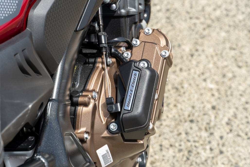 Why did Honda leave a manual clutch hand lever in situ? It’s there so that motorcycling “grommets” can develop their manual clutch control before moving on to riding bikes not equipped with an E-clutch. More confident riders can give the lever a dab with the throttle open in a low gear and initiate a mono-wheeling salute.