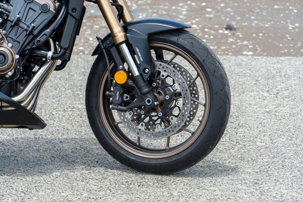 Honda’s second take on an auto-clutch is a beauty. Forget the dull take-off of a Super Cub, with its modest little fuel-conserving single cylinder engine. The scooter uses a centrifugal clutch that needs to get up to rotational speed before triggering the sliding weights that engage forward motion. In the CB650R, the new E-clutch instantly connects engine power to the drive chain, as it’s activated electronically instead of mechanically.