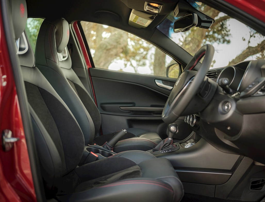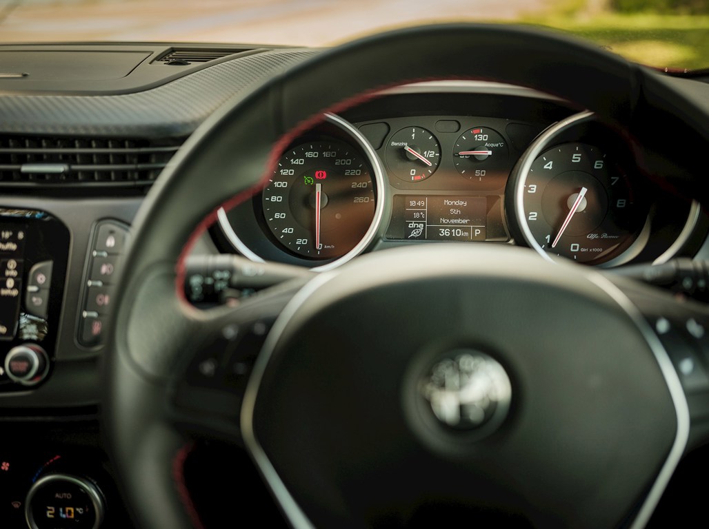 That is not to say the Giulietta is uncomfortable to drive. The driver’s seat is manually operated, and I found it relatively easy to set a comfortable driving position in place. Seats and the steering wheel have stylish red stitching between the alcantara and leather materials. While the flat-bottomed steering wheel is well-shaped, it seems too large when compared with other hatches.