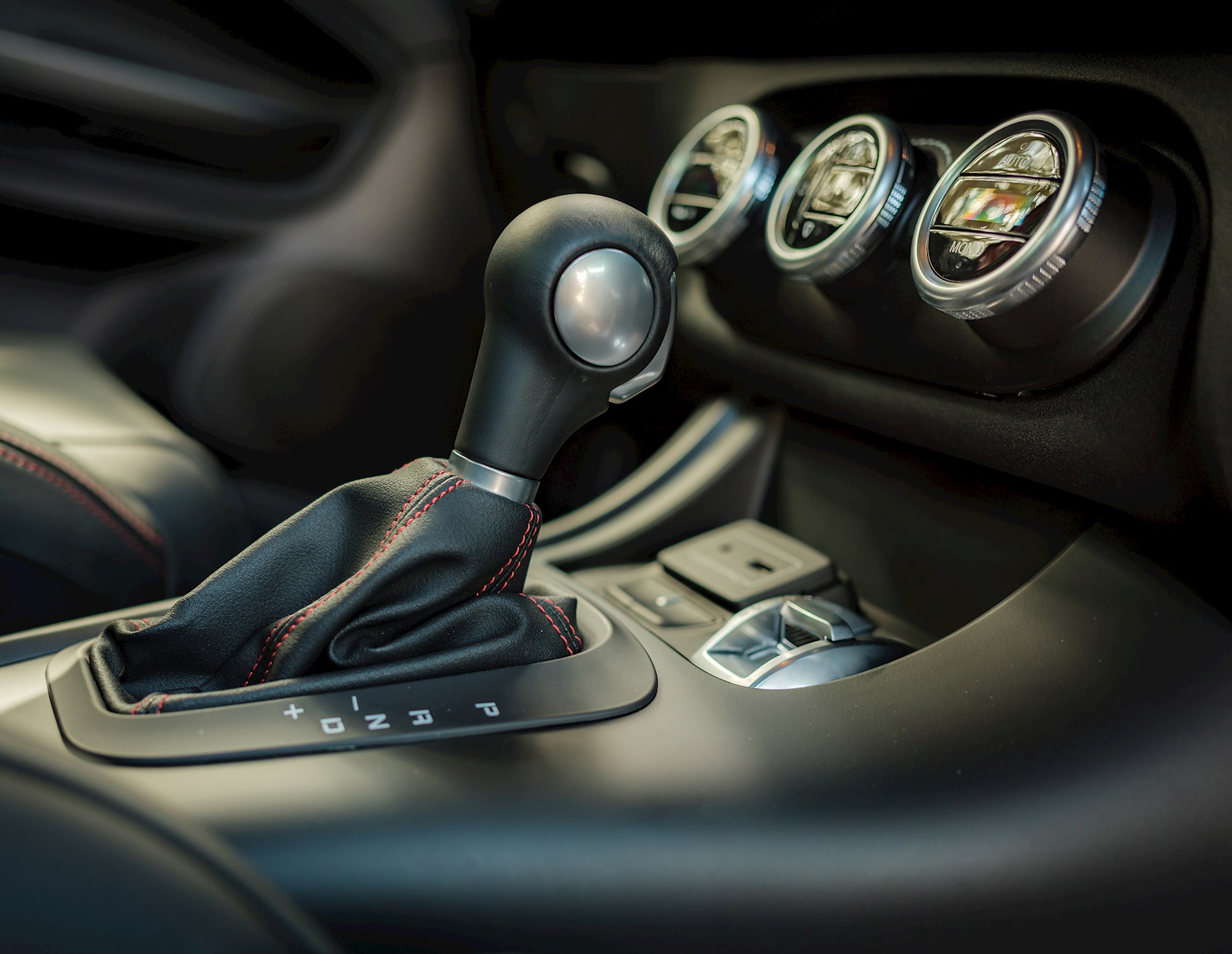A solid drive mode switch just in front of the gearstick adjusts the throttle response and steering weight between three different settings — dynamic, natural and all-weather. It is called the DNA switch, and in the sportier dynamic mode it prepares the brakes to handle a more spirited driving style, while the throttle response is sharper.