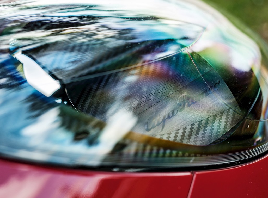 From the front, the low-slung signature Alfa Romeo triangular grille is now highlighted by a black honeycomb design, while newly updated front lamps give the car a contemporary feel. The new front light houses LED daylight running lamps and Bi-Xenon headlights.