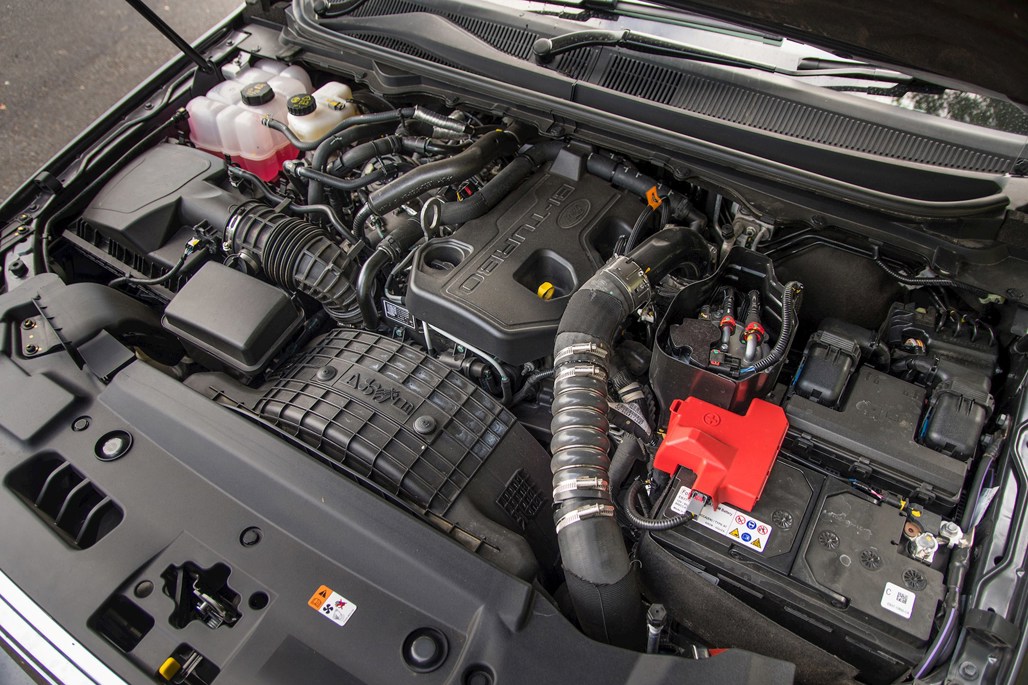 The move to only offer one spec of Everest in New Zealand extends to the engine bay and its 2-litre bi-turbo diesel. Yes, it’s the same powertrain from the Raptor, and here it’s paired to the same 10-speed automatic transmission. Power and torque are unchanged; 157kW at 3750rpm and 500Nm at between 1750-2000rpm respectively (14kW and 30Nm over the outgoing five-cylinder 3.2-litre unit).