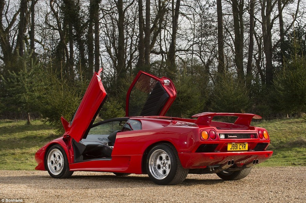 The bright red Diablo, which is capable of 200mph, is everything you want from a supercar - a rocket-like 5.7-litre V12 engine, scissors door and a raucous soundtrack that could drop out one of Stewart's live performances.