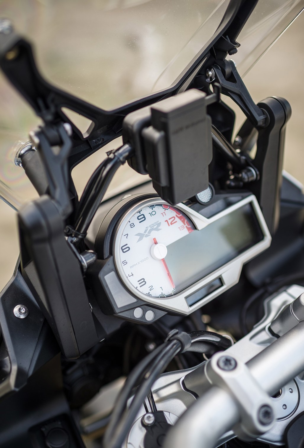 With long-range touring in mind, BMW made sure the XR was ready to take on the other hi-tech bikes in the segment (I'm talking mostly Ducati's Multistrada here). Apart from the huge 20-litre fuel tank, which gives a range of well over 250km, everything you could want is at the touch of a button on either side of the wide handlebars. At the left hand you have controls for the cruise control, ABS, traction control, and most importantly for the tourer, the switch for BMW's electronically controlled suspension system.