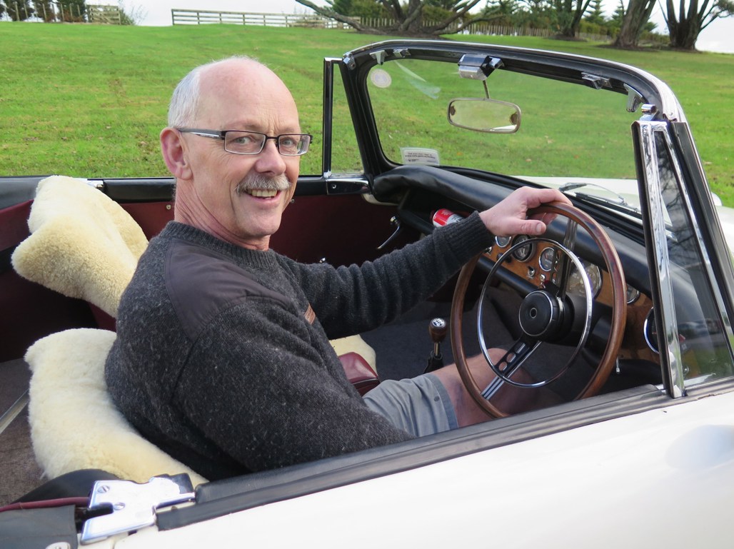 How well does the folding canvas roof work? “We’ve had a few runs where I’ve insisted having the top down,” Peter says, “And we’ve got soaked. If it’s showering you don’t get too wet, but if it gets heavier … the worst one was going to Dargaville, following friends with their top down.