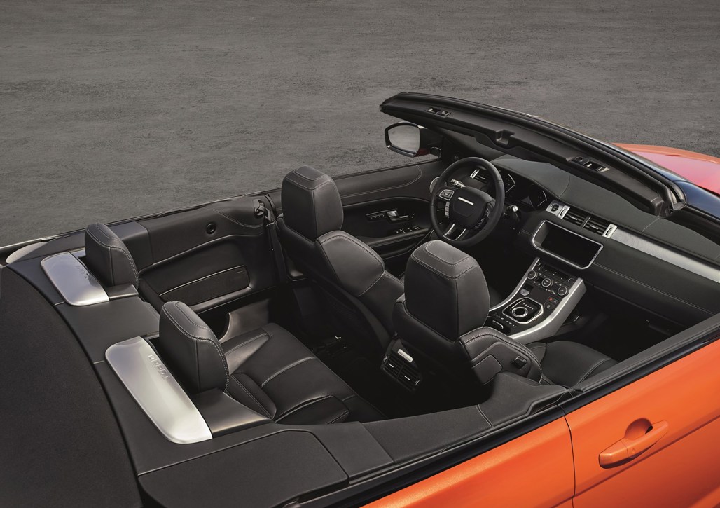 Motorways and autoroutes are hardly the sternest test of the Range Rover Evoque Convertible, but first impressions are that there's a blind spot like a galactic black hole in the rear three quarters, and that adding effectively four passengers to the kerb weight hasn't done the handling or performance any favours.