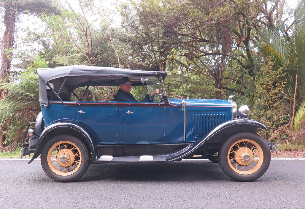 The couple take the old car all over New Zealand, usually with two other couples — also in As — they’ve been to Cape Reinga and Bluff, and are planning a trip to Te Anau. One of their friends, with a 1928 Ford, has marked all the roads they’ve covered on a map — and they’ve taken some gnarly ones that few would try without all-wheel-drive.