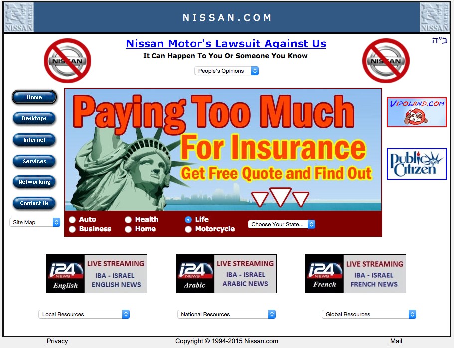 The next thing you will notice is the flashing link “Nissan Motor’s Lawsuit Against Us!”.