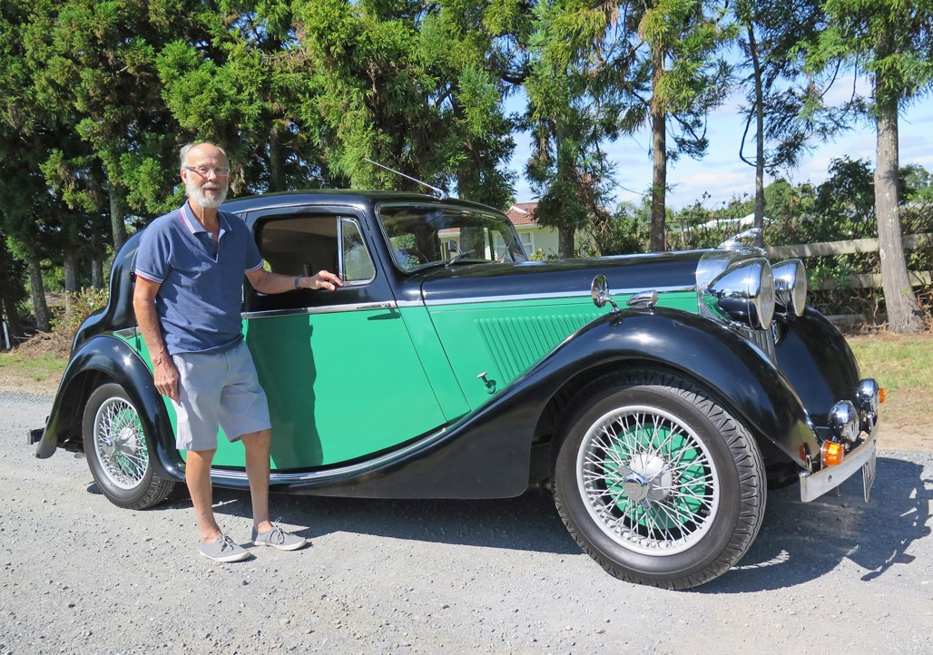Murray Taylor’s SS 1.5 Jaguar was one of 3748 built-in 1939 but it didn’t look like this when he bought it. His brother-in-law, who had acquired it as a basket case, restored motorcycles and started this, but got rheumatoid arthritis and couldn’t manage it. So he sent it, in pieces, to Murray in Kerikeri. That was about 15 years ago.