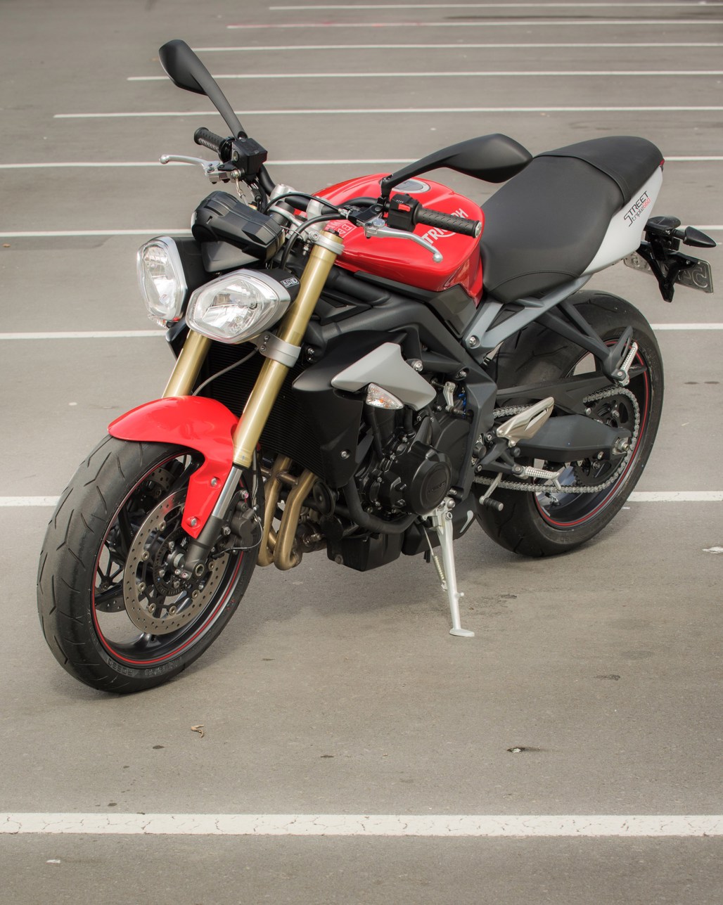 Unlike the Speed Triple, the Street range sticks with the simple swinging fork swingarm, keeping weight down as well as giving the Street a much more grounded appeal than the addition of an exotic single sided swingarm usually suggests.