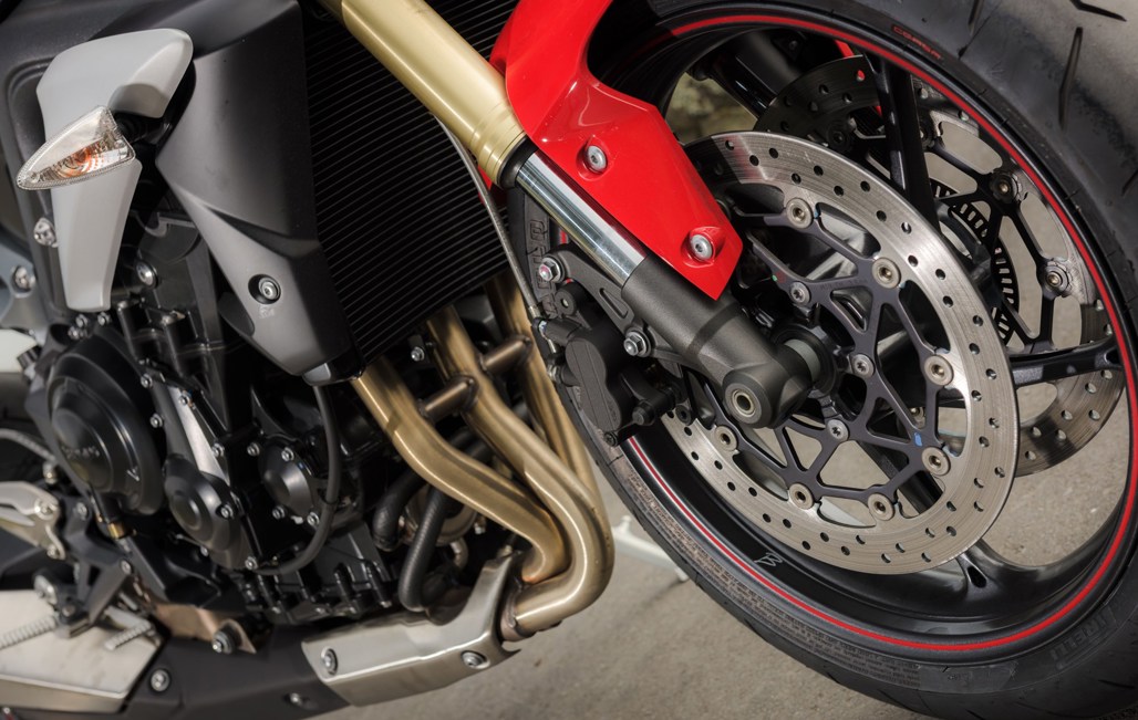 ABS is standard on the 660 and works a treat at preventing the twin Nissin-branded calipers from locking up the big 310mm front disk brakes. Interestingly, in the rear, Triumph chose to put a Brembo unit rather than another Nissin unit, and it adds to the bling factor as well as stopping power.