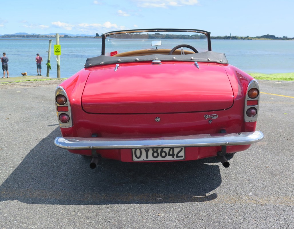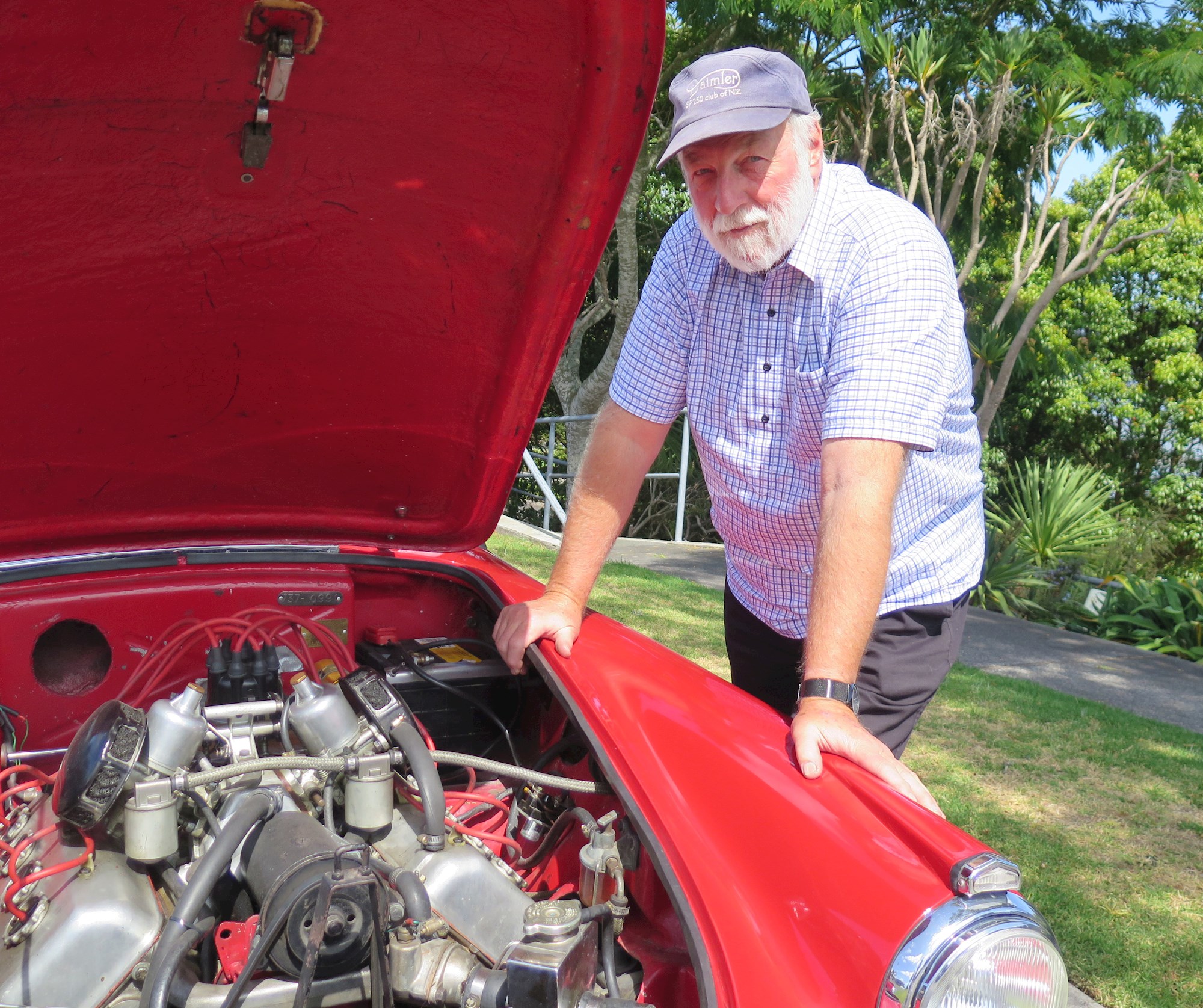 Modifications were made to the Dart, including “rack and pinion steering from a Morris Minor and a Toyota five-speed gearbox, as I imported them and the old ones were basically Ferguson tractor gearboxes — with the power the 2.5-litre V8 engine produced it always lost first gear. Most Daimler Darts will have had these mods.