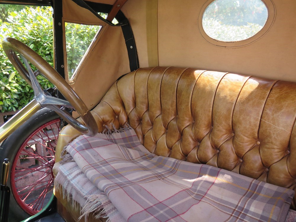 He removes the chocks and eases the Delage out of the garage — there’s very little clearance — before I clamber aboard for a breezy passenger ride. The plentiful airflow is wonderful in this summer weather. It gets along quite nicely, “On a good downhill it’ll reach 80km/h, but up the Bombays it’s 8km/h. We’re not allowed on the motorway, we’re too slow.” Indeed he’s been ticketed for going too slowly — usual cruising pace is around 30 to 40km/h.