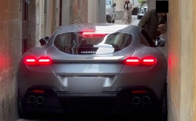 Icon T News Watch: $390K Ferrari gets stuck in narrow Italian street Watch: $390K Ferrari gets stuck in narrow Italian street