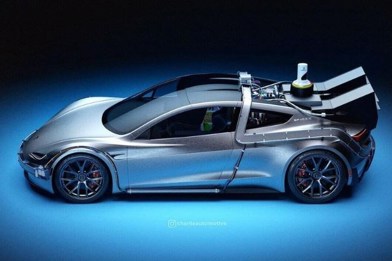 Icon T News Great Scott: Tesla's 400km/h Roadster reimagined as time travelling machine Great Scott: Tesla's 400km/h Roadster reimagined as time travelling machine