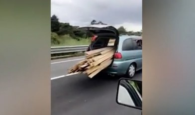 Icon T News Car carrying hilariously large pile of wood filmed out West Car carrying hilariously large pile of wood filmed out West