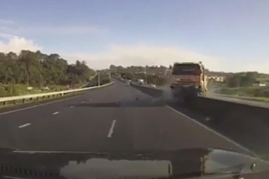 Icon T News Watch: Dash cam shows truck crashing through SH1 median barrier Watch: Dash cam shows truck crashing through SH1 median barrier