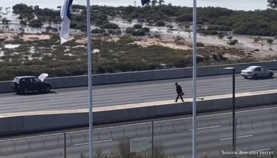 Icon T News Watch: Man strolls across Auckland motorway after he's caught empty Watch: Man strolls across Auckland motorway after he's caught empty